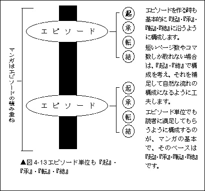 図4-7-1は左開きで横書き用で、図4-7-2は右開き縦書き用です。横書き用は横の吹き出しを意識してやや横が多く、縦書き用は縦書きのネームが入るように縦長のコマが多いです。