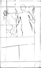 イメージが出来たら、実際の紙に描いて見ます。コマの大きさを決め、鉛筆などでコマを切ってみます。この作業は、一ページに5〜7コマを平均に、とにかく、見せたいコマを必ず大きくして、見開き(ページを開いた状態で見える2ページ)に入れるように意識して割りましょう。紙はコピー用紙やノートを使います。